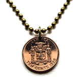 1996 Jamaica 1 Cent coin pendant crocodile alligator pineapples Kingston Portmore Spanish Town Montego Bay May Pen Mandeville Old Harbour Savanna-la-Mar Ocho Ríos Jamdung Patois dub ska Caribbean Marcus Garvey Rastafari Bob Marley Reggae n003867