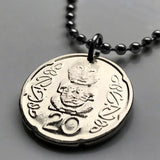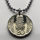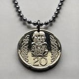 2014 New Zealand 20 Cents coin pendant Pukaki Maori carving Ngāti Whakaue iwi tribe chief Te Arawa Toi whakairo Wellington Hamilton Auckland Christchurch North South Island Te Waipounamu Marae Koruru haka dance kiwi Hawaiki Polynesia Te Reo n002150