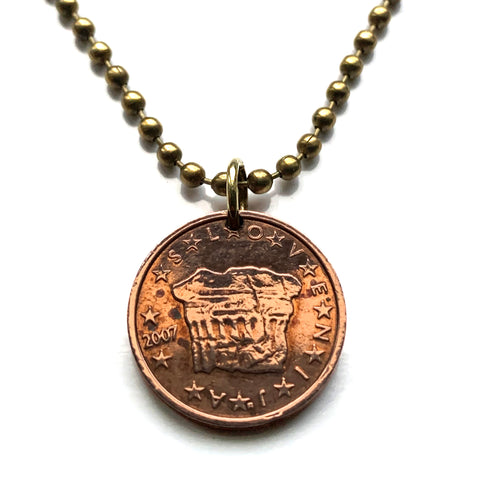 2007 Slovenia Slovenija 2 Euro Cent coin pendant Prince's Stone Roman column Dukes of Carinthia coronation Noricum Virunum Slovenian Kyrie Klagenfurt Slovenj Gradec Ravne na Koroškem Prevalje Mežica Dravograd Upper Carniola Yugoslavia n003765