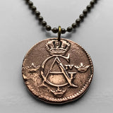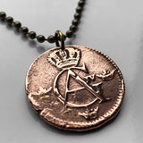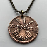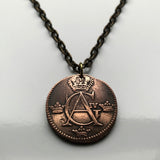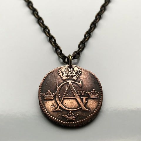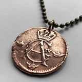 antique! 1806 Sweden Sverige 1/4 Skilling coin pendant Swedish crown Tre Kroner initial G A Stockholm Gothenburg Malmö Uppsala Norse Nordic Scandinavia Norrland Linköping Gotaland Östergötland n002079
