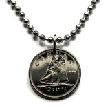 Canada 10 Cents handmade coin pendant Bluenose racing ship fishing vessel gaff sailing rig Canadian schooner Lunenburg Nova Scotia Mi'kma'ki Ottawa Montreal Quebec Toronto Ontario Vancouver Calgary British Columbia Alberta New Brunswick n003845