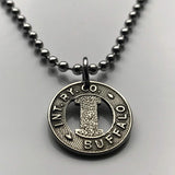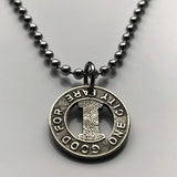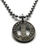 USA United States of America Buffalo New York IRC International Railway Company transit token coin pendant necklace jewelry street railway trolleybus One Fare transportation railroad Niagara Falls Erie County Lewiston Cheektowaga Depew n003325