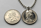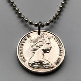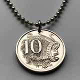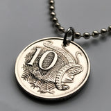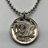 1983 Australia 10 Cents coin pendant necklace Aussie Superb Lyrebird song bird Sydney Melbourne Brisbane Perth Canberra Queensland Victoria colorful plumes tail feathers endemic courtship n000150