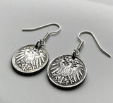 Germany Deutschland 5 Pfennig Iron coin earrings jewelry World War 1 era black German eagle Berlin Hamburg Munich Cologne Frankfurt Stuttgart Düsseldorf Dortmund Bavaria Rothenburg Leipzig Bremen Dresden e000071