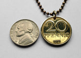 1969 East Germany Deutschland 20 Pfennig coin pendant German Democratic Republic Berlin wall Dresden Leipzig Cold War Soviet Occupation Munich Bonn Hanover Dortmund Bremen Bavaria Eastern Bloc n000359