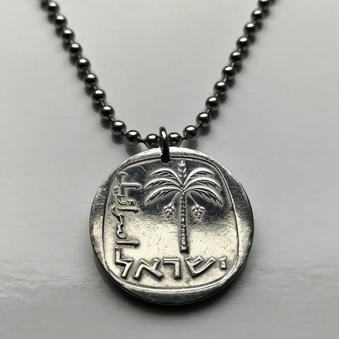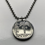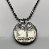 1978 Israel 10 Agorot coin pendant Jewish date palm tree Judean Hebrew Jew Jerusalem Haifa Rishon LeZion Petah Tikva Tel Aviv Ashdod Star of David Netanya Judaism Beersheba Holon Safed Nazareth Tanakh Torah Talmud Mikra Holy Land Middle East n002519