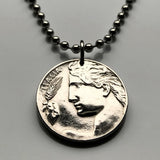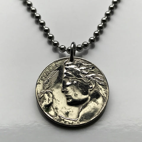 1910 Italy 20 Centesimi coin pendant Lady Liberty flight Rome Florence savoy shield Genoa Sicily Napoli Torino Parma Pisa Lecce Amalfi n003176