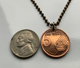 2001 Netherlands Nederland 5 Euro Cent coin pendant Dutch Queen Beatrix Amsterdam Utrecht Holland Rotterdam The Hague Leiden Eindhoven Tilburg Groningen Leiden Haarlem Ajax Gouda Almere Delft n003844