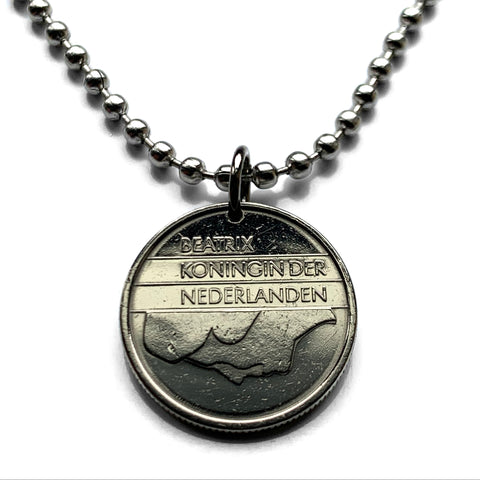 1998 Netherlands 25 Cents coin pendant Dutch Queen Beatrix Amsterdam Utrecht Holland Rotterdam The Hague Leiden Eindhoven Nederlanden Tilburg Groningen Leiden Haarlem Ajax Gouda Almere Delft n000855