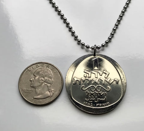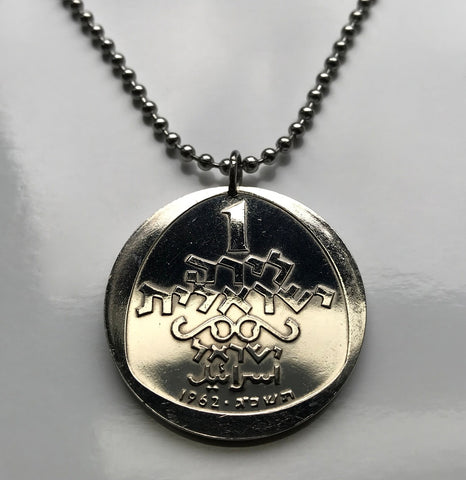 1963 Israel 1 Lira coin pendant Hanukkah Italian lamp menorah Jewish Jerusalem Torah Hebrew Judea Jaffa Masada Caesarea Talmud Zion n003603