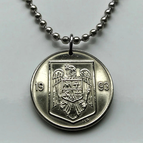 1993 Romania 10 Lei coin pendant golden eagle Bucharest Cluj-Napoca Iasi Moldavia Wallachia Constanța Timisoara Brasov Craiova Galati Oradea Constanta Ploiesti Braila Sibiu Transylvania Michael the Brave Vlad Dracula Impaler Vlachs Poenari castle n002731