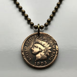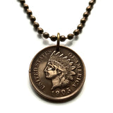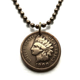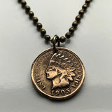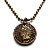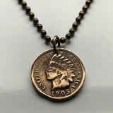USA Indian Head Cent coin pendant Native American Indian First Nation Chief Tribal feathered headdress War bonnet Great Plains American Civil War Navajo Cherokee Choctaw Chippewa Sioux Apache Blackfeet Creek Iroquois Lumbee Pueblo Chickasaw n000807