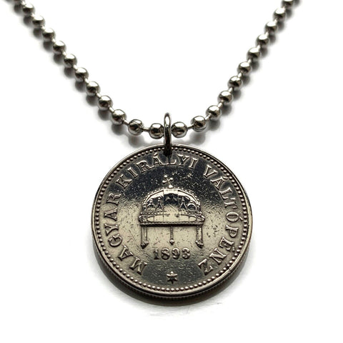 1893 Hungary Magyars 20 Filler coin pendant necklace jewelry Hungarian Holy Crown of Saint Stephen Szent Korona Budapest Debrecen Szeged Miskolc Pécs Győr Gellért Hill Nyíregyháza Jászság Fejér Hajdú-Bihar n000861