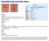front: Shield with Royal Arms of the House of Windsor under the Imperial State Crown, top Left the emblem of tower mint in London, top right a Tudor Rose, below ribbon with the lettering "ROYAL MINT".