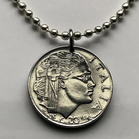 1942 Italy Italian 20 Centesimi coin pendant Italia Savoy Rome Milan Siena Capri Sardinia Parma San Gimignano Positano Lazio World War 2 n001388