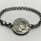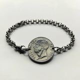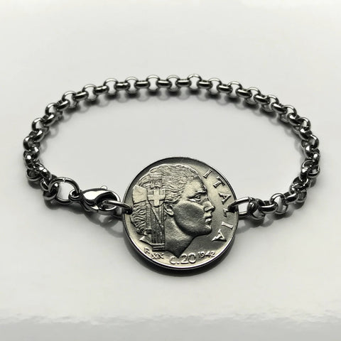 1942 Italy Italian 20 Centesimi coin bracelet Italian lady fasces fascist World War 2 era Savoy shield Benito Mussolini Rome Milan Siena Capri Sardinia Parma San Gimignano Positano Lazio b000084