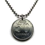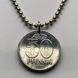 1968 East Germany Deutschland German Democratic Republic GDR 50 Pfennig coin pendant Berlin wall Leipzig Dresden Ampelmann Meck-Pomm Chemnitz Magdeburg Rostock Halle Erfurt Potsdam Schwerin Soviet socialist communist Saxony n002906