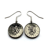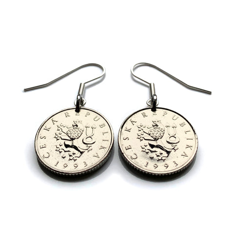 Czechia Republic 1 Koruna coin earrings Czech lion Saint Wenceslas Crown Prague Charles Bridge Brno Ostrava Plzen Liberec Olomouc Kutna Hora Cesky Krumlov Bohemia Moravia Silesia Ceske Budejovice Hradec Kralove Pardubice Usti nad Labem Zlin e000583