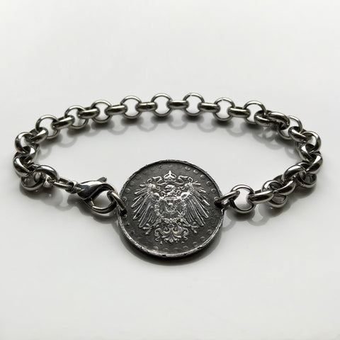 1916 Germany Deutschland 10 Pfennig coin bracelet German black eagle Berlin Hamburg Munich Cologne Frankfurt Stuttgart Düsseldorf Leipzig Dortmund Essen Bremen Dresden Hanover Nuremberg b000092