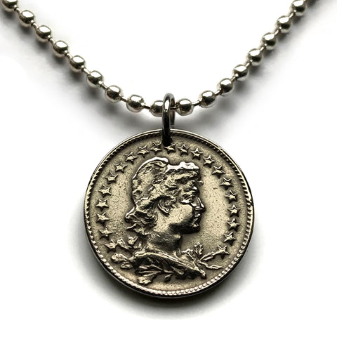 1931 Brazil 100 reis coin pendant Lady Liberty São Paulo Bahia Rio de Janeiro Espírito Santo Porto Alegre Baía de Guanabara Salvador n000812