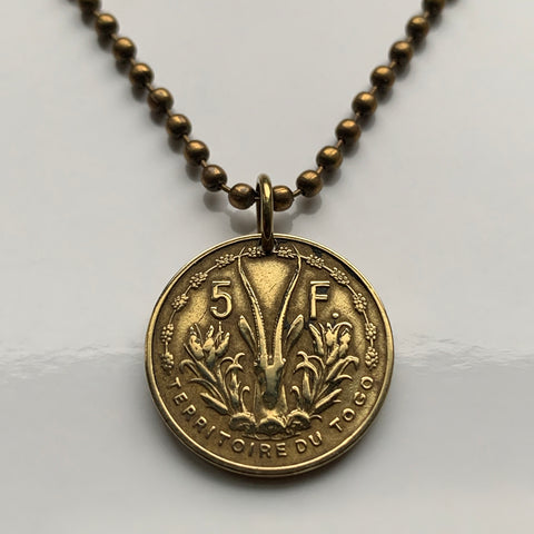 1956 Togo 5 Francs coin pendant gazelle antelope sawfish Lomé Sokodé Kara Kpalimé Atakpamé Dapaong Tsévié Anié Notsé Cinkassé Ewe Savanes Centrale Plateaux Maritime Little Popo Aného Kabye Mina Gen Gbe Gun Kotokoli Tem Tchamba iKabye Mossi Moba n003669