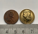 • demonetized {no longer in circulation} polished Aluminium-bronze coin