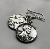 USA 1943 Steel Penny 1 Cent coin earrings World War 2 Allies Abraham Lincoln wheat steelie magnetic coin Americana Victory necklace e000122