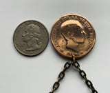 Spain España Spanish coin pendant necklace jewelry escudo Español Madrid Barcelona Sevilla Granada Zaragoza Toledo Cadiz Tenerife Córdoba Valencia Málaga Bilbao A Coruña Murcia Asturias Cataluña Las Palmas Vigo Gijón Ibiza Oviedo Andalusia Castile Leon Aragon Navarre Rioja Astorga Basque