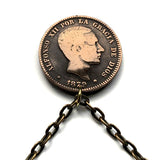 Spain España Spanish coin pendant necklace jewelry escudo Español Madrid Barcelona Sevilla Granada Zaragoza Toledo Cadiz Tenerife Córdoba Valencia Málaga Bilbao A Coruña Murcia Asturias Cataluña Las Palmas Vigo Gijón Ibiza Oviedo Andalusia Castile Leon Aragon Navarre Rioja Astorga Basque