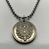 1876 Germany Deutschland 10 Pfennig coin pendant German black eagle Berlin Hamburg Munich Cologne Frankfurt Stuttgart Düsseldorf Bavaria Leipzig Dortmund Essen Bremen Dresden Hanover n000465