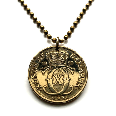 1940 Denmark Danmark Danskere 1 Krone coin pendant necklace jewelry Danish Royal crown initial C X Copenhagen Aarhus Odense Aalborg Esbjerg Randers Jutland Danes Zealand Funen Vikings Amalienborg Scandinavia Nordic Norse n000041
