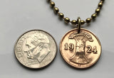 1924 to 1936 Germany 1 Reichspfennig coin pendant Berlin Hamburg Munich Koeln Duisburg Deutschland Bavaria Wandsbek Karlsruhe Oktoberfest World War 2 era WWII n000113