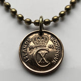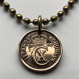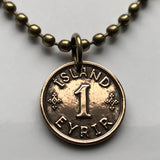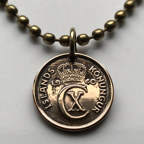 1940 Iceland 1 Eyrir coin pendant Ísland Reykjavík initial C X Icelandic crown Scandinavian red blue cross shield WWII necklace n002527