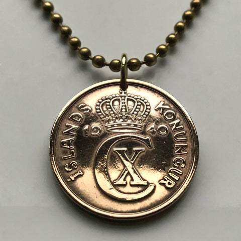 1940 Iceland 5 Aurar coin pendant Ísland Reykjavík initial C X Nordic Griðungur Bergrisi Gammur Dreki Vík Skógar Arctic World War 2 n002826