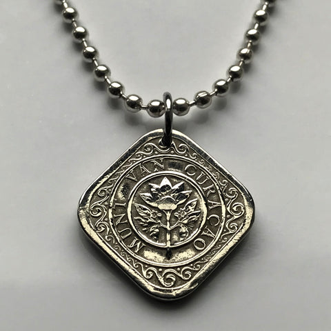 Curacao Netherlands Antilles Pais Kòrsou coin pendant necklace jewelry Orange blossom Willemstad Punda Otrobanda Newport Tera Kora Sint Michiel Dorp Soto Barber Santa Rosa Lagun Papiamento Dutch Caribbean ABC islands Holland Amsterdam floral seashells sea waves Nederlandse Antillen Curaçaoan Cas Abou beach Lesser Antilles