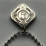 1948 Curacao Netherlands Antilles 5 Cent coin pendant necklace jewelry Orange blossom Dutch Caribbean sea shells Playa Kenepa Sint Anna Schottegat Bay n000069