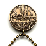 1975 France 10 Francs coin key chain keyring pendant necklace jewelry French map Paris Marseille Lyon Toulouse Angers Versailles Bordeaux Nice Strasbourg Lille Montpellier Avignon Saint-Étienne Le Havre Metz Carcassonne n000133