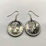 Italy Italia 50 Lire coin Italian jewelry earrings laureate Roma Milan Florence Venice Verona Genoa Perugia Bari Palermo Bologna Torino Napoli Cagliari San Gimignano Siena Modena Vulcan blacksmith e000124