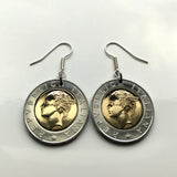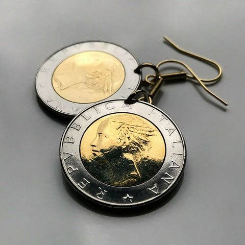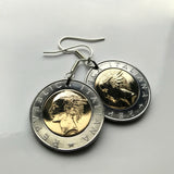 Italy 500 Lire Italian coin earrings jewelry Roman god Mercury Mercuralia Rome Florence Milano Venice Torino Napoli Bologna Palermo Siena Modena Lecce Perugia Bari Catania Messina Padua Trieste Taranto Ancona Ferrara Parma Treviso Pisa e000118