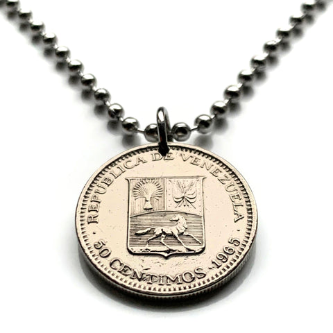 1965 Venezuela 50 Céntimos coin pendant necklace jewelry Simón Bolívar white horse Palomo Caracas Maracaibo Valencia pendant Barquisimeto Ciudad Guayana Maturín Barcelona Maracay Cumaná Barinas Miranda San Cristóbal n000480