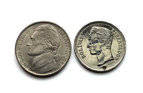 • demonetized {no longer in circulation} polished Nickel coin