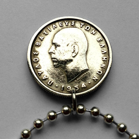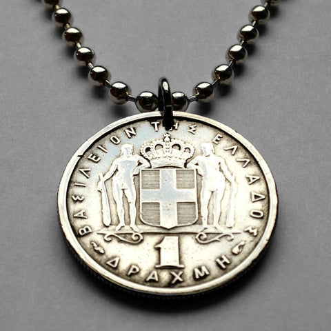 1954 Greece Hellas 1 Drachma coin pendant Greek white cross Heracles Athens Crete Macedonia Sparta Volos Peloponnese Pella Thebes n000377