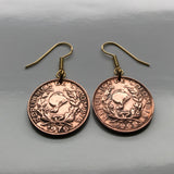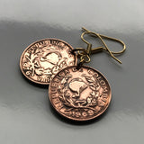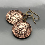 Colombia 5 Centavos coin earrings Jacobin cap Bogotá Medellín Cali Barranquilla Cartagena Cúcuta Bucaramanga Pereira Antioquia Valle del Cauca Quimbaya Santander Manizales Caldas Soledad e000243