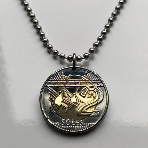 2021 Peru 2 Soles coin pendant necklace jewelry Nazca Lines hummingbird Ica bird ancient mysterious desert line drawings UFO Lima llama Incas n002138