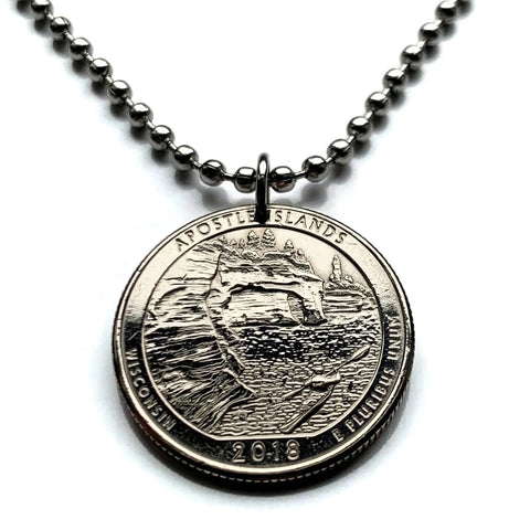 2018 USA Quarter 25 Cents coin pendant Sea caves Devils Island kayaking Apostle Islands Ashland Wisconsin Lake Superior Bayfield n003880