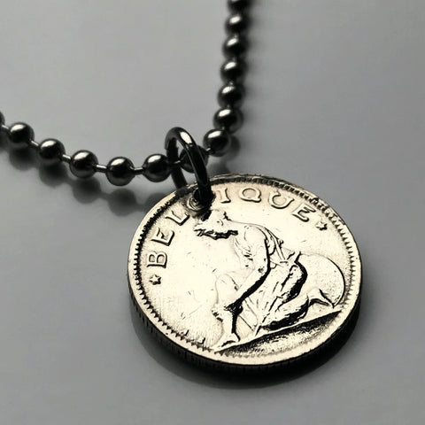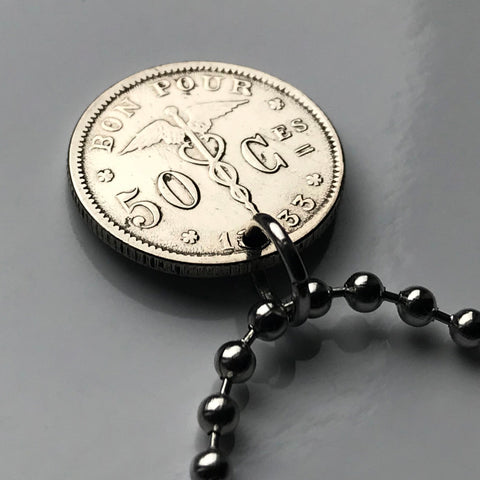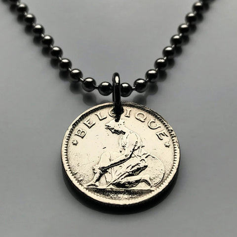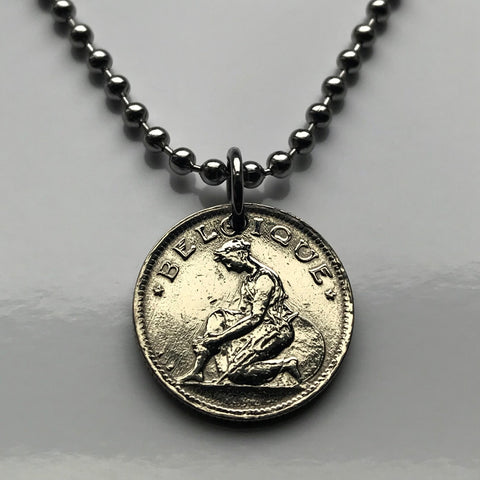 1923 Belgium 50 Centimes coin pendant Belgian lady Brussels Antwerp Bruges Ghent Liège Mons Kortrijk Ostend Ypres Dinant Limbourg Bilstain Wallonia Namur Charleroi Schaerbeek Leuven Mechelen n003406