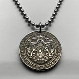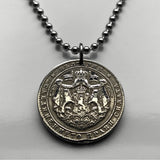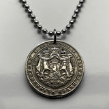Bulgaria Bǎlgariya coin pendant necklace jewelry Bulgarian crowned golden lions Sofia Plovdiv Varna Burgas Ruse Stara Zagora Pleven Nesebar Vidin Kardzhali Bulgars Sliven Dobrich Shumen Lyulin South Slavic Balkans Blagoevgrad Pazardzhik Veliko Tarnovo Madara Rider Karanovo Cyrillic Black Sea Danube Thracians