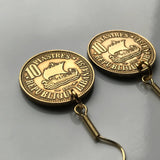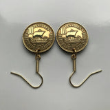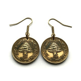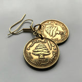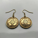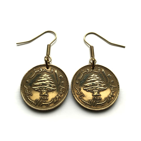 1955 Lebanon Liban 10 Piastres coin earrings Lebanese cedar tree ship Beirut Tripoli Jounieh Zahlé Sidon Aley Tyre Byblos Beqaa Valley Levantine Arabic Baalbek Batroun Nabatieh Zgharta Bint Jbeil Bsharri Baakleen Anjar Chekka Qozhaya Middle East e000468