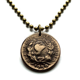 1959 Colombia 5 Centavos coin pendant necklace jewelry Jacobin liberty cap Bogotá Medellín Cali Barranquilla Cartagena Cúcuta Bucaramanga Pereira Caldas Soledad Ibagué Soacha Villavicencio Bello Vallenato n001821