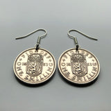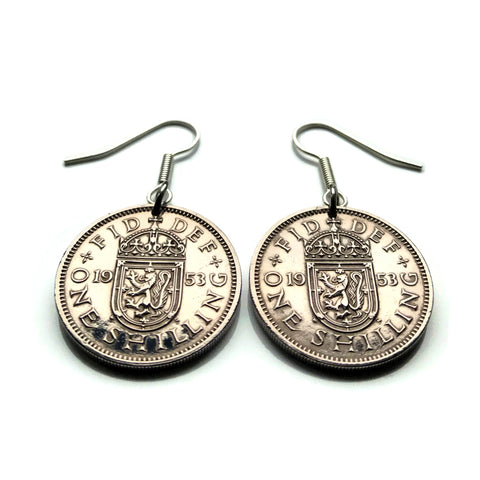 United Kingdom Scotland 1 Shilling coin earrings jewelry Scottish lion Edinburgh Glasgow Perth Alba Dundee Aberdeen Holyrood Palace Lothian Stirling Scots Inverness Fife Great Britain British e000207